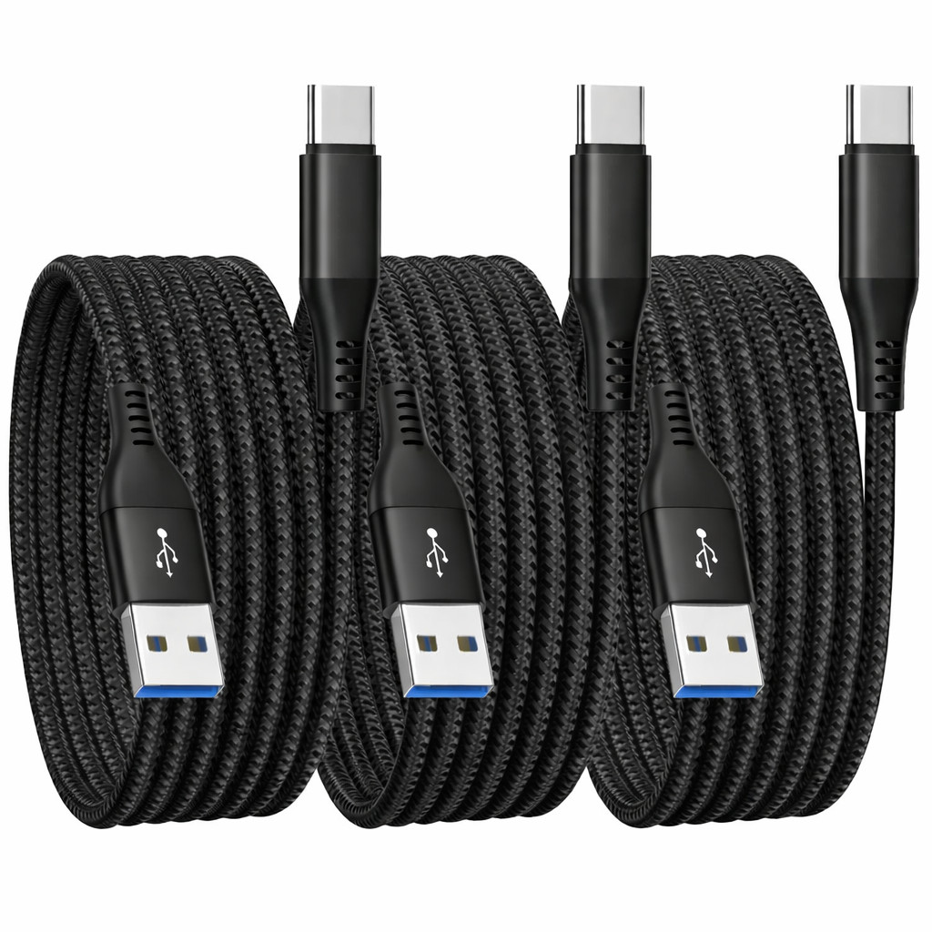 3 Pack Heavy Duty USB Type C Charging Cable Braided Fast Phone Long Lead 2m 1m