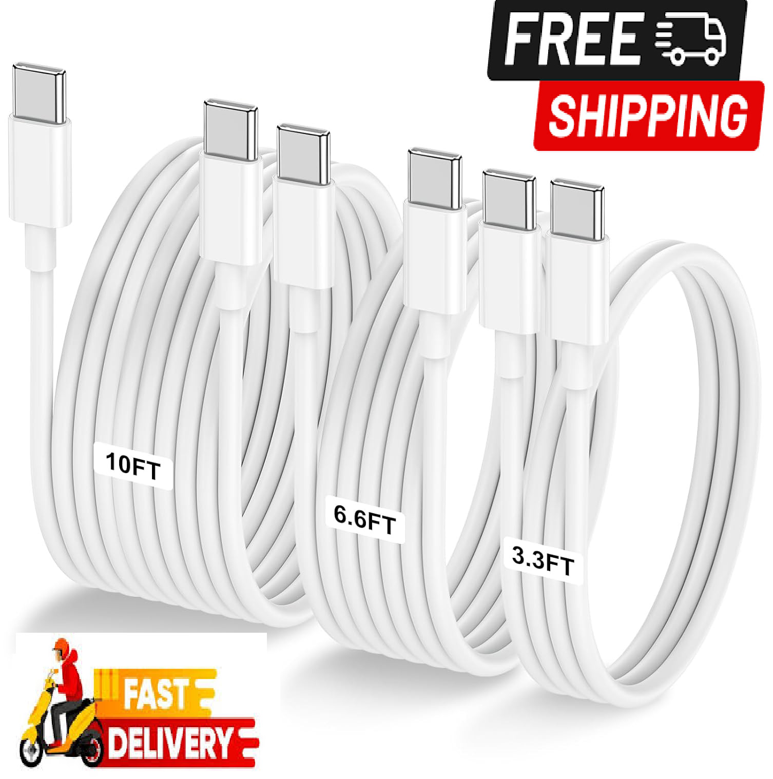 3-Pack [3.3FT+6.6FT+10FT] 60W USB C to USB C Cable, Type C to Type C Cable,Fast