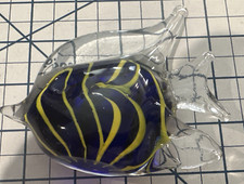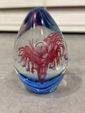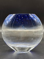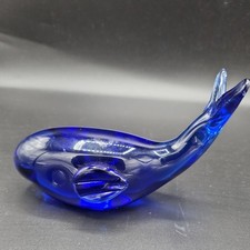 Vintage cobalt blue art glass paperweight controlled bubble design
