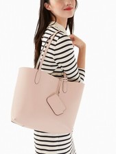 NWT Kate Spade Ava Reversible Black Leather Tote Beige Pouch K6052 Gift Bag F
