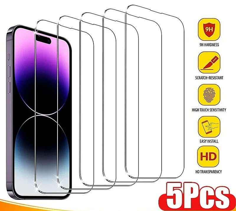 5X Tempered Glass For iPhone 16,15..6 Pro,pro Max ,Screen Protector,