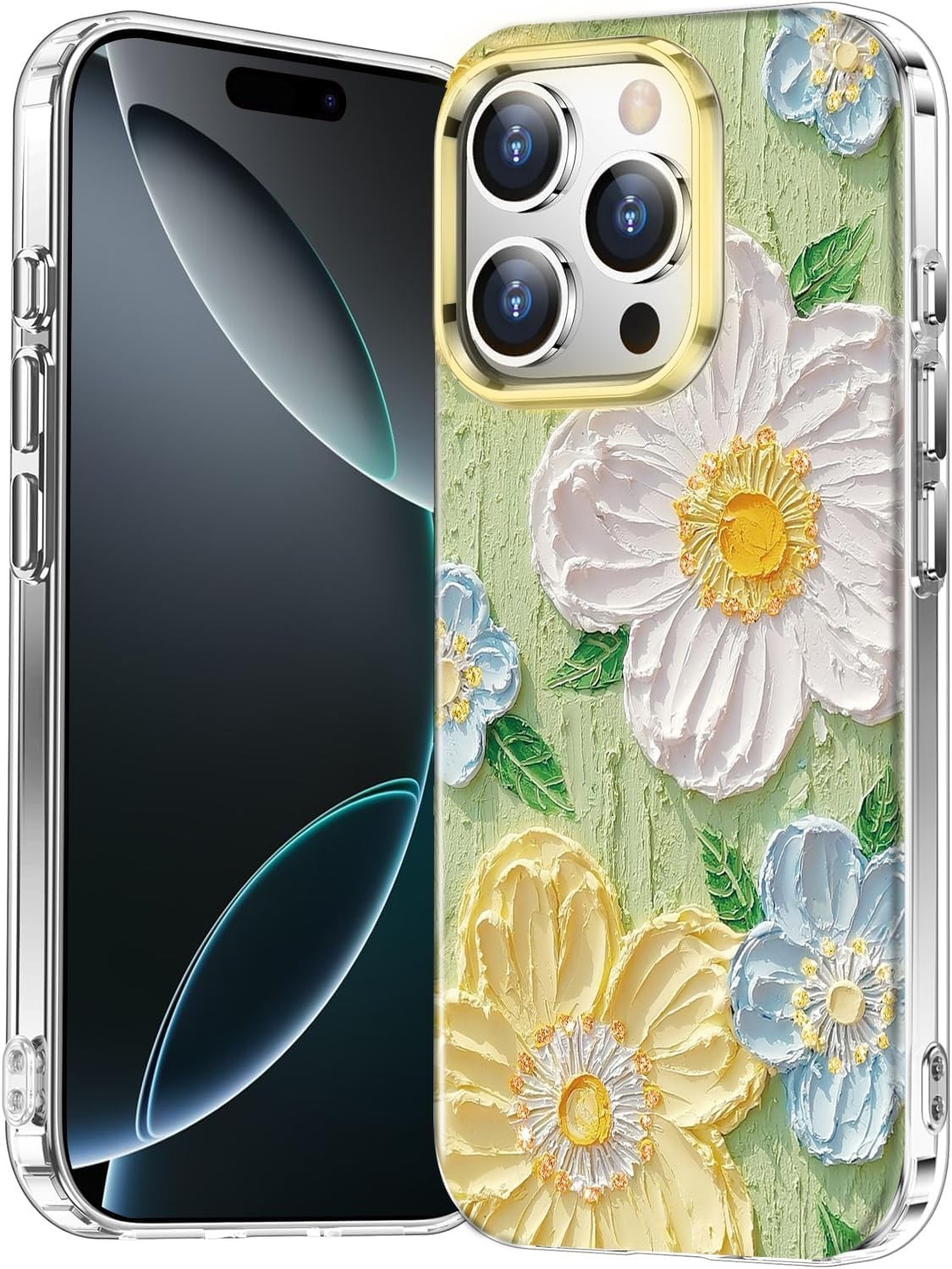 luolnh Case for iPhone 16 Pro Max Floral Design Shockproof Case White Flower