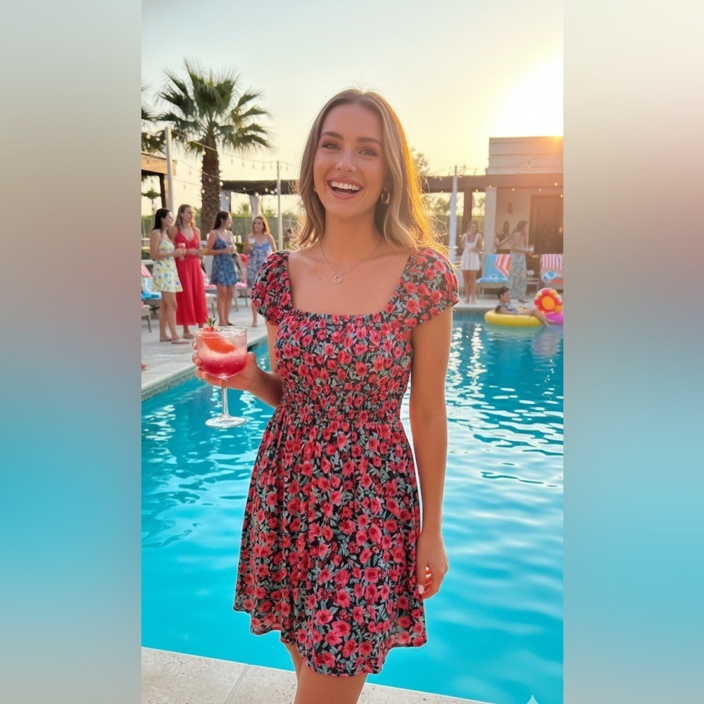 Old Navy Floral Smocked Waist Mini Dress Pink Green Navy Cap Sleeve NWT