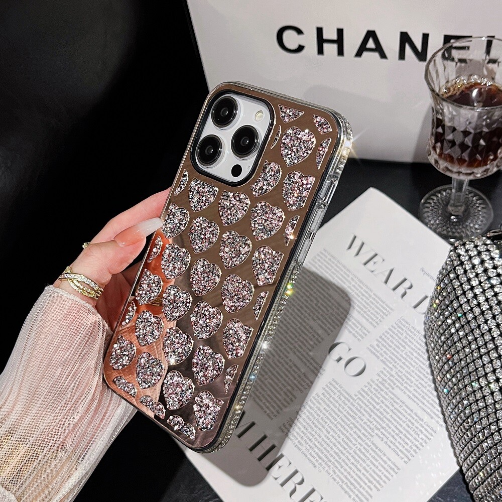 For Apple iPhone 16 15 Pro Max 14 13 12 Glitter Bling Love Crystal Diamond Case