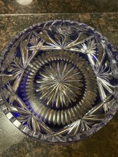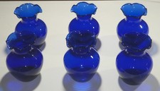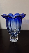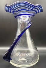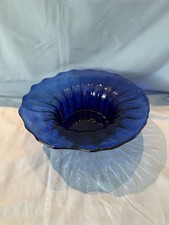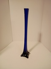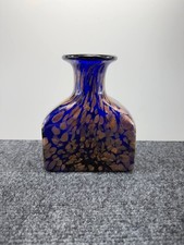 Vintage Cobalt Blue Art Glass Vase Hand Painted Blown Frosted Bird Flower Mexico