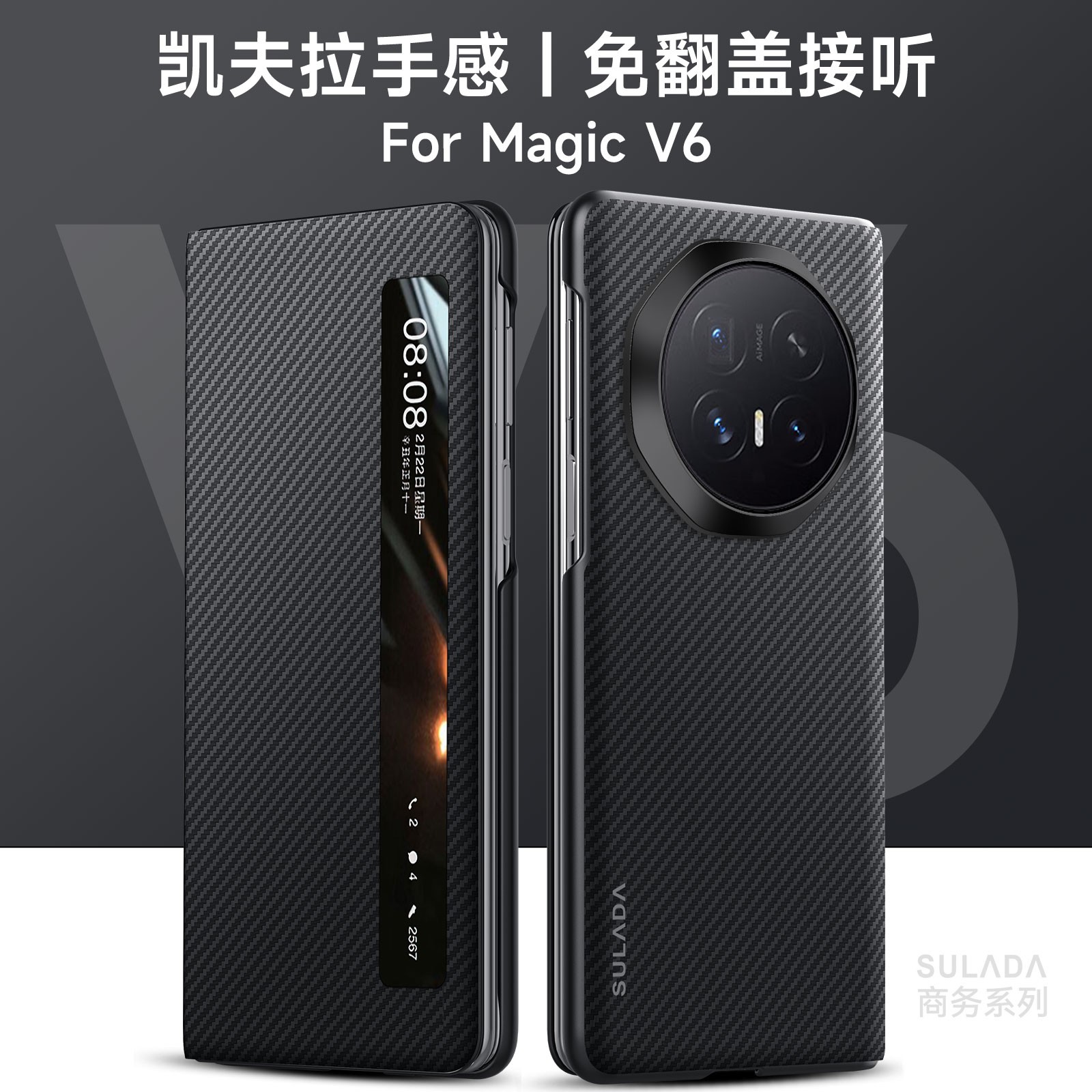 For Honor Magic V6, Carbon Fiber Smart Wake UP Sleep Flip Leather Case Cover