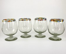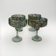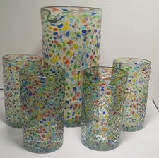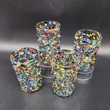 Set Of 4 Mexican Confetti Hand Blown Drinking Glasses/ Tumblers 6 In Tall