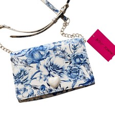 Betsey Johnson Crossbody Bag Womens Small Black Quilted Chain Purse Gold Tone