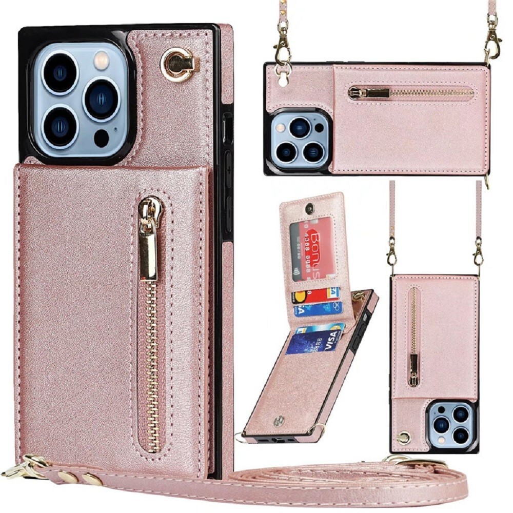 Case iPhones 13 pro, Fashion Collection Crossbody Case Flip Leather, Zipper