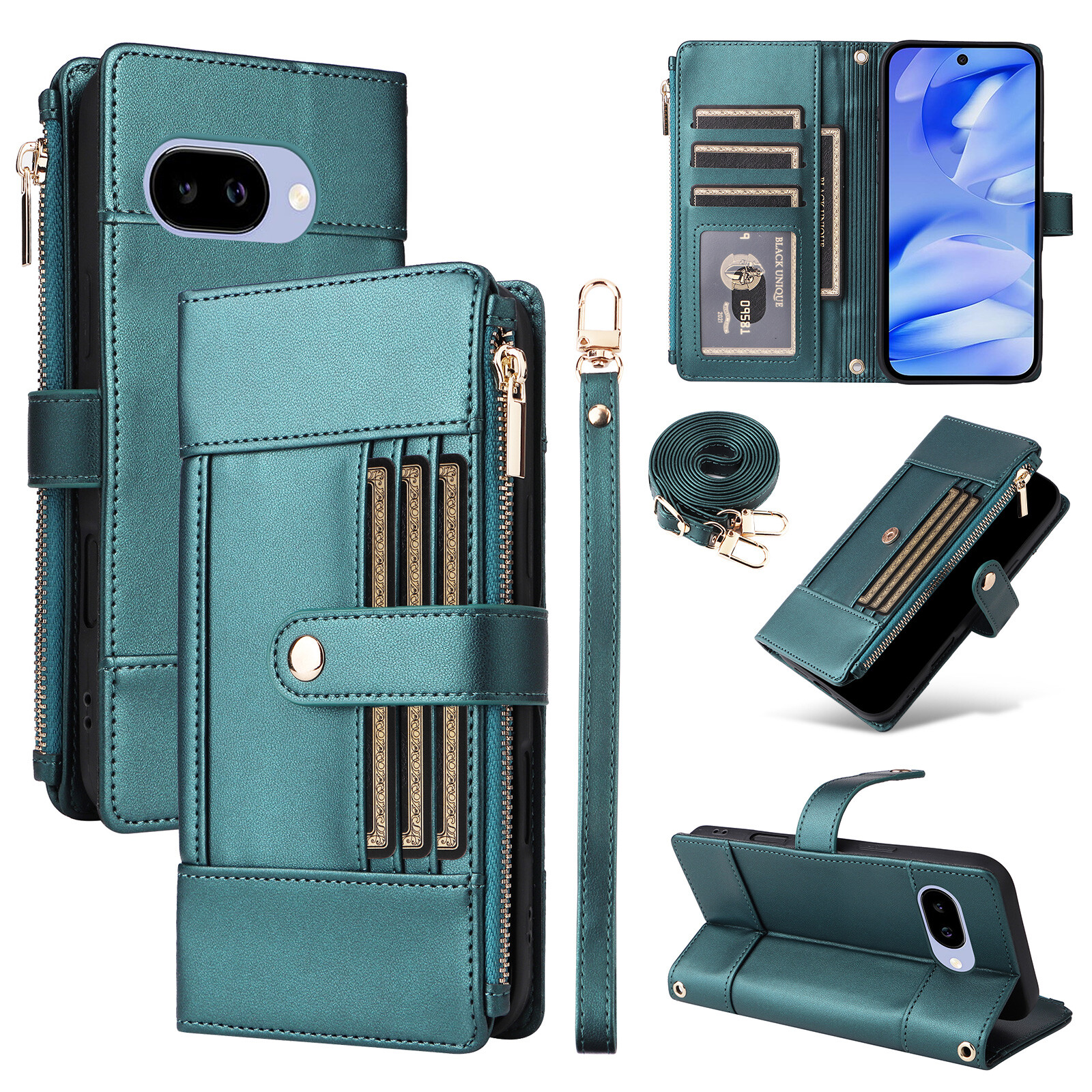 Wallet Case For Google Pixel 9 Pro XL 9A RFID Crossbody Zipper PU Leather Cover