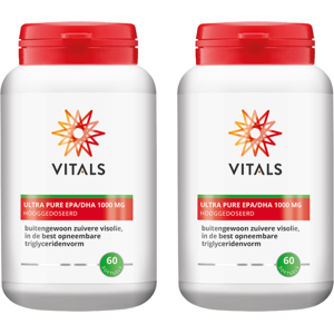 Vitals Omega 3 EPA/DHA Ultra pure 1000mg Ontdek de kracht van puurheid met Vitals Ultra Pure EPA/DHA 1000 mg: een premium visoliesupplement met een hoge dosering van de essentiële omega 3-vetzuren EPA (570 mg) en DHA (430 mg) per softgel. Verfijnd in de best opneembare vorm van triglyceriden, biedt dit supplement een optimale ondersteuning voor uw omega 3-vetzuurstatus, essentieel voor de gezondheid van hart, hersenen en ogen. Dankzij de samenwerking met Golden Omega, een toonaangevende producent bekend om zijn uitzonderlijk zuivere en verse visolie, garanderen we een product van de hoogste kwaliteit. Onze visolie is helder van kleur, wat wijst op zijn superieure kwaliteit, en wordt gewonnen met een gepatenteerde productiemethode die zorgt voor minimale oxidatiewaarden. Dit zorgt niet alleen voor een product dat zuiver is van schadelijke stoffen, maar minimaliseert ook de kans op onaangename visoprispingen. In een wereld waar de inname van voldoende omega 3-vetzuren uit vis vaak een uitdaging is, biedt Ultra Pure EPA/DHA 1000 mg een veilige en effectieve manier om van de gezondheidsvoordelen te genieten zonder de risico's van milieuverontreiniging. Het is ideaal voor diegenen die hun bloeddruk en bloedvetgehalte op een gezond niveau willen houden met een dagelijkse inname van slechts 2 tot 3 softgels. Bovendien is Ultra Pure EPA/DHA 1000mg getest op doping volgens het NZVT-systeem, wat het een betrouwbare keuze maakt voor topsporters die hun prestaties willen verbeteren zonder het risico op doping. Elk productiebatch wordt gecontroleerd, met de mogelijkheid om de testresultaten te verifiëren via de NZVT-database. Kies voor Ultra Pure EPA/DHA 1000 mg van Vitals: een zuiver, krachtig en veilig supplement om uw gezondheid op natuurlijke wijze te ondersteunen. Toegestane gezondheidsclaims: EPA en DHA zijn goed voor de normale werking van het hart, bij een dagelijkse inname van 250 mg EPA en DHA (1 softgel per dag) DHA is goed voor het behoud van een gezonde hersenfunctie en een goed gezichtsvermogen, bij een dagelijkse inname van 250 mg DHA (1 softgel per dag) EPA en DHA zijn goed voor het behoud van gezonde vetgehalten in het bloed bij een dagelijkse inname van 2 gram EPA/DHA (2 softgels per dag) EPA en DHA zijn goed voor het behoud van een normale bloeddruk bij een dagelijkse inname van 3 gram EPA/DHA (3 softgels per dag) Samenstelling per softgel: Visolieconcentraat (triglyceriden) 1428 mg Waarvan: EPA (eicosapentaeenzuur) 570 mg DHA (docosahexaeenzuur) 430 mg Samenstelling per 2 softgels: Visolieconcentraat (triglyceriden) 2856 mg Waarvan: EPA (eicosapentaeenzuur) 1140 mg DHA (docosahexaeenzuur) 860 mg Het visolie-triglyceridenconcentraat wordt geproduceerd door Golden Omega S.A. met behulp van een gepatenteerde concentratie- en zuiveringstechnologie. Ingrediënten VISolie-triglyceridenconcentraat, VISgelatine (softgelcapsule), bevochtigingsmiddel (glycerol), gezuiverd water...